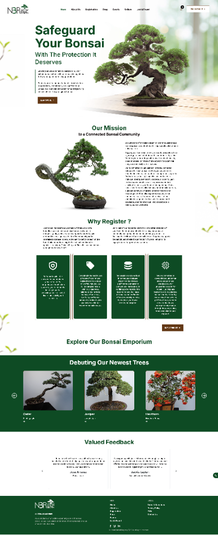 The National Bonsai Registry website is designed to help bonsai enthusiasts register and protect their bonsai trees while fostering a connected community. It's primarily for bonsai collectors and hobbyists seeking to safeguard their valuable trees.