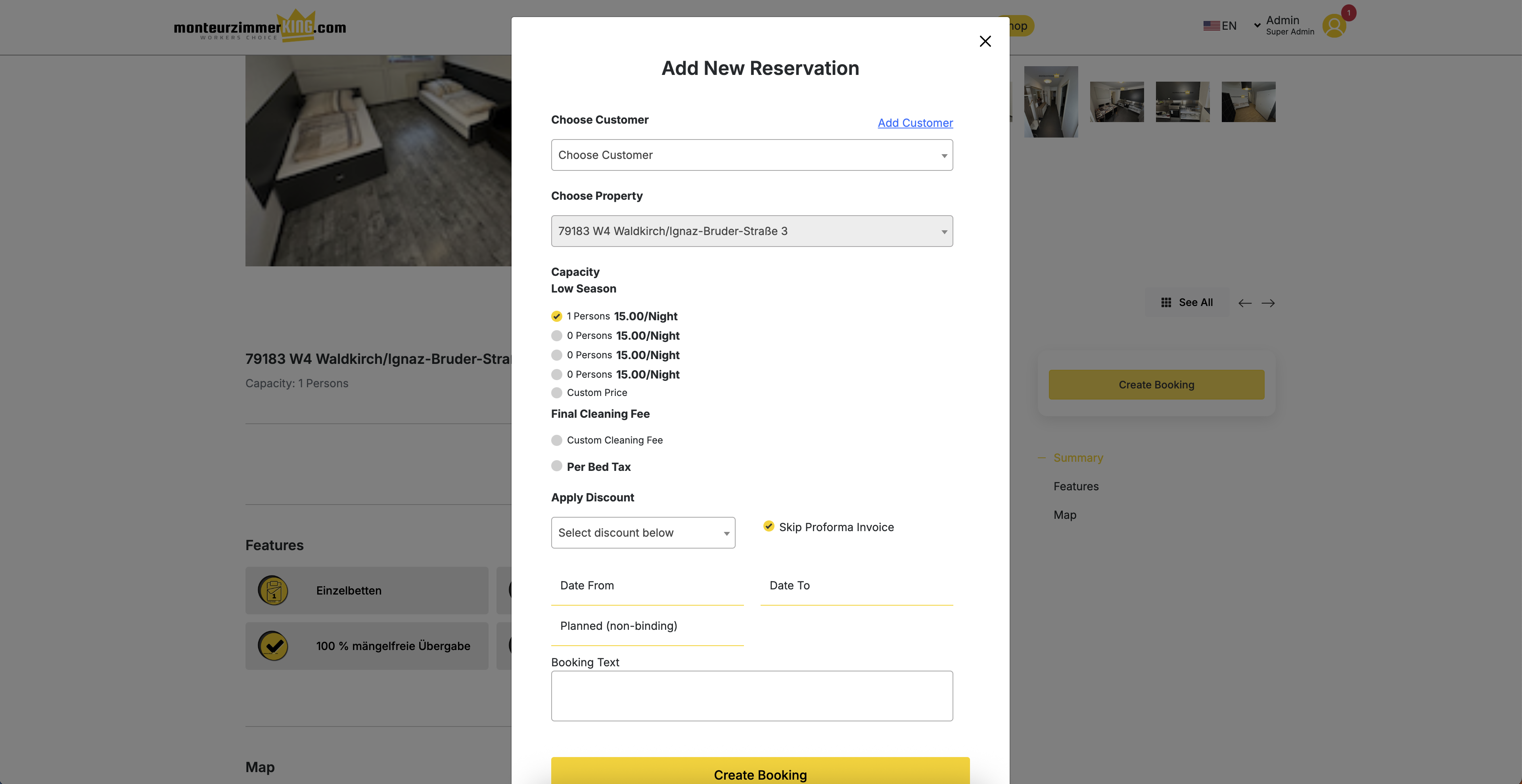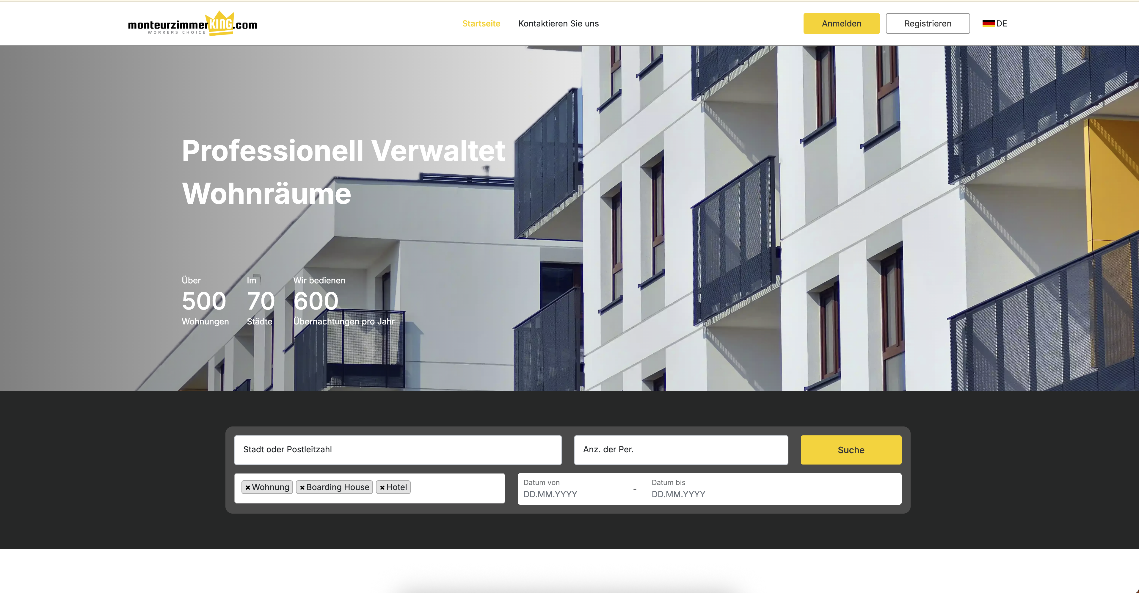 MonteurzimmerKING is designed for landlords and real estate investors to list—including automated tools, coaching, and franchise support. The platform supports hundreds of properties in 70+ cities, handling booking, documentation, invoicing, and communications in a highly automated manner.